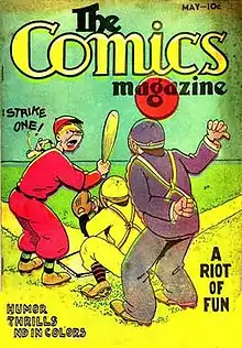 Circa 1930, either Arnold persuaded Buffalo, New York printer Walter Koessler to invest in a color plant in order to print comics,[4] or vice versa[5] (sources differ). In either event, Arnold became vice president of Koessler's Greater Buffalo Press and learned publishing as the company began printing a large number of color comic newspaper sections.[4][5] In 1936, Arnold gave either financial or other, unspecified help to the New York City-based Comics Magazine Company, founded by John Mahon and Bill Cook, former employees of Major Malcolm Wheeler-Nicholson's National Allied Publications, the primary forerunner of DC Comics.[5][6] The duo published the premiere issue of The Comics Magazine (May 1936),[7] using inventory content from National Allied's submissions. The original features (as opposed to color comic strip reprints, as Famous Funnies published) included the Doctor Occult spin-off Dr. Mystic the Occult Detective (unrelated to the Mr. Mystic that later ran in newspapers), by future Superman creators Jerry Siegel and Joe Shuster. Other titles included Funny Pages, Funny Picture Stories, Detective Picture Stories and Keen Detective Funnies. Daniel R. Hanna Sr., publisher of Ohio's Cleveland News, printed the interiors, with Cleveland's Penton Press printing the covers and handling binding and shipping. But the company — which would evolve into Centaur Publications[6] — would have no hit title.[4]