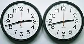 "Untitled" (Perfect Lovers) is the title of two different artworks created by Félix González-Torres. Each of the artworks consists of two identical wall clocks hung side-by-side so that they are touching. When installed the clocks are initially set to the same time but may fall out of sync over the course of an exhibition. “Untitled” (Perfect Lovers) (1987-1990) consists of two wall clocks with black rims; this work is an edition of three, plus one artist's proof. A separate, unique work, “Untitled” (Perfect Lovers) (1991), similarly consists of two identical wall clocks but with white rims instead of black, and includes the option of painting the wall on which the clocks are hung light blue.[1][2][3]