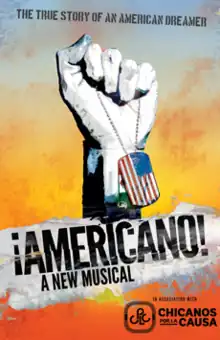 ¡Americano! is a musical telling based on the real-life story of Antonio (Tony) Valdovinos, a resident of the United States who learns that he is not a U.S. citizen when he tries to enlist in the U.S. Marine Corps.[1][2] The script was written by Michael Barnard, Jonathan Rosenberg, and Fernanda Santos; Carrie Rodriguez composed the music. Barnard, Rosenberg, Santos and Rodriguez are credited together as lyricists.[3]