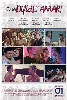 ¡Qué difícil es amar! (lit. 'How difficult it is to love!') is a 2018 Peruvian romantic comedy film written, directed and co-produced by David Ames in his directorial debut. Starring Milett Figueroa, Diego Bertie, Oscar López Arias and Valentín Prado.[1][2]