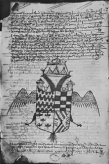 Cabeza de Vaca's father and grandfather died around 1506 and his mother died in 1509, leaving behind a modest estate for her seven children. His younger siblings went to live with their aunt but Álvar had already entered the service of Juan Alfonso Pérez de Guzmán, 3rd Duke of Medina Sidonia in 1503.[10] The house of Medina Sidonia was one of the most powerful in Andalusia and was a dominant force in Seville, the commercial center of Spain's growing overseas empire. Cabeza de Vaca served as a page and then chamberlain for the duke. In 1511 he traveled to Italy to fight against the French in the Italian Wars. In February 1512 he took part in the Battle of Ravenna where the Spanish were badly defeated and Cabeza de Vaca was wounded. He later served as the royal standard-bearer in Gaeta, near Naples.[11]