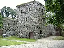 - ↑ The 1153 bull of Pope Eugenius III to Furness makes note of Óláfr's gift of Manx lands to the abbey: "ex dono nobilis viri Olavi regis insularum".[193] Although the ruins of Rushen Abbey stand near Ballasalla today, there is evidence to suggest that the original site was located at Scarlett (near Castletown), until the abbey relocated to Douglas in 1192, and finally to its present location in about 1196.[190] Until its dissolution in the sixteenth century, Rushen Abbey was the principal monastic establishment on Mann.[194] The house may have turned Cistercian in about 1147.[195]
