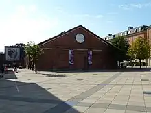 Two large buildings located on each their side of the central axis were converted into cultural venues. Kanonhallen (The Canon Hall) was used as a theatre and events venue and was later put at the disposal of the theatre company Kalaidoskop. Dansescenen (The Dance Stage) was a contemporary dance venue. In 2009 both stages were taken over by the theatre Republique, a reinvention of the Frederiksberg-based theatre Camp X, which focuses on international and experimental theatre. Dansescenen moved to Tap E in Carlsberg where it is now part of Dansehallerne. Østerfælled Torv is also home to Krudttønden ("The powder keg"), another cultural venue, which hosts smaller concerts and other shows.[4]
