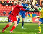 National team coach Siggi Eyjólfsson selected Þóra in the Iceland squad for UEFA Women's Euro 2013,[10] although she was recovering from a hamstring injury.[11] Guðbjörg Gunnarsdóttir took the goalkeeping position at the final tournament, playing in the three group matches and the 4–0 quarter-final defeat to hosts Sweden.