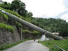It was the first hydroelectric power station in South Vietnam.[4] Electricity produced here supplied the central region of Vietnam but was unable to reach the large industrial centres in Saigon and Bien Hoa, which had to rely on oil for electricity generation.[4] Two large pipes, crossing the road, carrying water from a height of 1,000 metres to Đa Nhim lake to drive the turbines of the Hydropower Plant.[5]