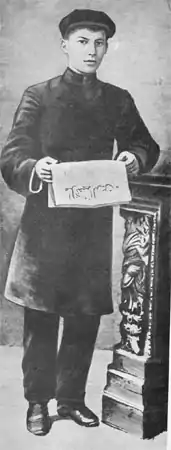 Ğabdulla Tuqay[1] (April 26 [O.S. April 14] 1886 – April 15 [O.S. April 2] 1913) was a Volga Tatar poet, critic, publisher, and towering figure of Tatar literature. Tuqay is often referred to as the founder of modern Tatar literature and the modern Tatar literary language, which replaced Old Tatar.[2]