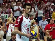 After four years, Żygadło moved to the Russian League, where he played for Fakel Novy Urengoy for one season, 2012/2013.[3] Then he moved to another Russian club, Zenit Kazan.[4] He signed a 2-year contract and replaced Italian setter Valerio Vermiglio.[5] On October 6, 2013 he was injured during training.[6] He lost season 2013/2014, because of injury.[7] He broke his foot, which is after two surgeries and reconstructions of bone.[8] In the club from Kazan he has been replaced by Serbian setter Nikola Grbić.[9] After two surgeries, bone reconstruction and rehabilitation, Żygadło returned to training in March 2014.[10] After the season 2013/2014 Żygadło left Zenit Kazan. The contract was terminated by mutual agreement of both parties.[11] After two seasons spent in Russia Żygadło accepted an offer from Italian club Trentino Volley. He returned to the club, where he won several titles in 2008-2012.[12] His official return to the club from Trentino was announced on July 10, 2014 and the player stated he was glad about his return to the city and the team.[13] On May 13, 2015 he won title of Italian Champion with Trentino Volley.