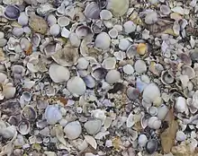 Oyster shells on Omana beach.