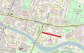 The street is located nearby the Brda river, its track running parallel to the water, on a west-east axis. It stems out of Bernardyńska Street in the west and runs between the river and Jagiellońska street.