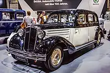 The first prototype of the Type 924 was built in 1937; however, it did not enter production until 1939. The Type 924 had a new 3,140 cc (191.6 cu in) overhead-valve straight-six engine, an extended wheelbase and shorter, more rounded bodywork. The 924 was characterized by having its spare-wheels located behind the front mudguards.[2]