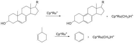 - ↑ Halcrow, Malcolm A.; Urbanos, Francisco; Chaudret, Bruno (March 1993). "Aromatization of the B-ring of 5,7-dienyl steroids by the electrophilic ruthenium fragment "[Cp*Ru]+"". Organometallics. 12 (3): 955–957. doi:10.1021/om00027a054. ISSN 0276-7333.
