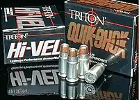 The .40 Super is a powerful automatic pistol cartridge developed in 1996 and introduced to the market by Triton Cartridge. The cartridge was co-developed by Fernando Coelho and Tom Burczynski.