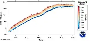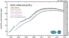 - 1 2 "HCFC-142b". NOAA Earth System Research Laboratories/Global Monitoring Division. Retrieved 2021-02-12.