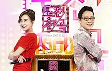 Various television personalities co-hosted the show throughout its nearly 14-year run. Comedian Lee Hwi-jae began hosting the show (with Jeong Hyeong-don) in April 2008, and continued until the show's cancellation in 2014. Trot singer Jang Yun-jeong first hosted the show for a year and a half, beginning in April 2006, and returned in August 2009.[9] Lee and Jang were praised for their "smooth and entertaining" hosting style, and they won the "Best Couple Award" at the 2013 SBS Entertainment Awards.[7][10] Jang left the show in April 2014 due to her pregnancy, and was replaced by Hyolyn.[11]