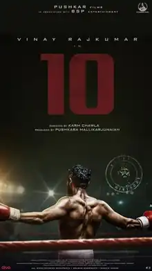 10 is a 2022 Kannada-language film directed by Karm Chawla and starring Vinay Rajkumar in the role of a boxer, Gopal Deshpande as the coach and Anusha Raghunath. The film is a sport drama exploring the life and struggles of a boxer.[1][2] 10 was announced in May 2019 and the shooting commenced in September 2019, wrapping just three months later in December 2019. It was made with a budget of 70 lakh (US$88,000), and the production budget amounted to just under 50 lakh (US$63,000), thus setting the stone for a new generation of high quality low-budget Kannada flicks. Before the commencement of principal photography, actor Vinay Rajkumar trained intensely for his role as a Featherweight Boxer by having regular workouts and strict diet regimen for six months.[3]