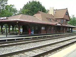 111th Street–Morgan Park is one of two Metra railroad stations in the Morgan Park neighborhood of Chicago, Illinois, along the Beverly Branch of the Rock Island District Line, 13.8 miles (22.2 km) from LaSalle Street Station, the northern terminus of the line.[2] The station is named after 111th Street, although its address is 11046 South Hale Avenue between Monterey and Prospect Avenues; 111th Street runs in line with Monterey Avenue east of Morgan Park. In Metra's zone-based fare system, 111th Street is in zone C. As of 2018, 111th Street–Morgan Park is the 92nd busiest of Metra's 236 non-downtown stations, with an average of 548 weekday boardings.[1]