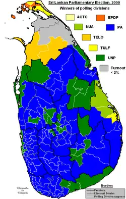 - ↑ "Parliamentary General Election 2000 – All Island Result Composition of Parliament". Department of Elections, Sri Lanka. Archived from the original on 2010-08-26. Retrieved 12 September 2010.