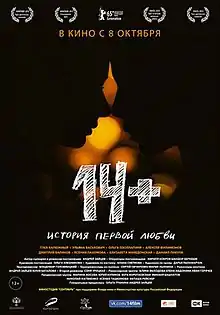 14+ is a 2015 Russian coming-of-age romantic film produced by the Cinema Foundation of Russia. It was first shown at the 2015 Berlin International Film Festival. It is about a teenage boy feeling infatuation for the first time.[1] A sequel was released in 2023: 14+: Continued.