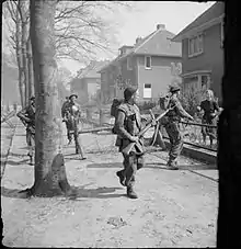 During the Second World War, the 147th Brigade remained as part of the 49th (West Riding) Infantry Division throughout the war but did not see service in the Norwegian Campaign, being replaced in the division by the Regular 24th Guards Brigade and remained in the United Kingdom. The brigade was stationed in Iceland,[7] and adopted as its insignia the polar bear on an ice floe. In 1942 it was transferred back to the United Kingdom until June 1944, when it invaded Normandy shortly after the initial D-Day landings on 6 June and fought in the battle for Caen in Operation Martlet (where 6th DWR suffered such severe casualties that it was disbanded) and the Second Battle of the Odon and later in the capture of Le Havre (Operation Astonia), clearing the Channel Coast, and the Battle of the Scheldt. With the rest of 49th Division, the brigade fought its last battle of the war in April 1945 in the Liberation of Arnhem and the fierce battles that led up to it. During the fighting on the Continent, the 49th Infantry Division was nicknamed the "Polar Bears" because of their divisional insignia and were christened by Lord Haw-Haw, the Nazi propaganda broadcaster, as the "Polar Bear Butchers".