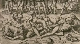 • sicking dogs of war on non-combatants until they were dead and their corpses mutilated,[15][17][16]