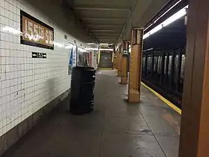 This underground station has two local tracks with two side platforms. The two express tracks, used by the A train during daytime hours, are on a lower level beneath the station and are not visible from the platforms.[7]