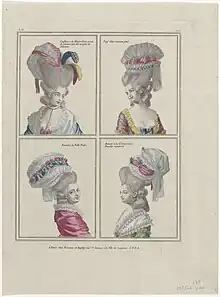Fashionable hairstyles from Galerie des Modes et Costumes Français 1780
