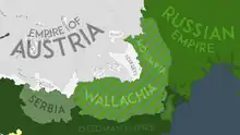 The two Danubian Principalities, Wallachia and Moldavia, came under direct Russian supervision upon the close of the Russo-Turkish War of 1828–1829, being subsequently administered on the basis of common documents, known as Regulamentul Organic. After a period of Russian military occupation, Wallachia returned to Ottoman suzerainty while Russian oversight was preserved, and the throne was awarded to Alexandru II Ghica in 1834—this measure was controversial from the onset, given that, despite the popular provisions of the Akkerman Convention, Ghica had been appointed by Russia and the Ottomans, instead of being elected by the Wallachian Assembly.[1] As a consequence, the Prince was faced with opposition from both sides of the political spectrum, while also attempting to quell the peasantry's discontent by legislating against the abuse of estate lessors.[2] The first liberal movement, taking inspiration from the French Revolution and having for its stated purpose the encouragement of culture, was Societatea Filarmonică (the Philharmonic Society), established in 1833.[3]