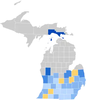 As of the 2020 presidential election, this is the last and only time Sanilac County voted for a Democratic presidential candidate.[1] It would also be the last time until 1964 that Allegan County, Hillsdale County and Lapeer County would support a Democratic presidential candidate.[1] This was also the last time Michigan sent a full slate of Democratic electors to the Electoral College until Franklin Delano Roosevelt in 1932, although it did send five Grover Cleveland electors in 1892.[2]