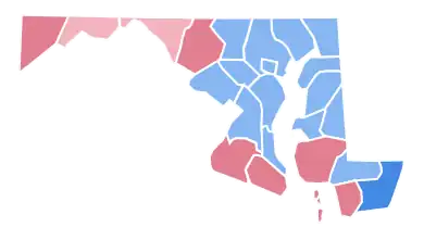 In this election, Maryland voted 8.89% more Democratic than the nation at-large.[1]