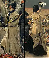 - Vicomtesse De Montmorand wears a gown fastened in back, without a bustle, signalling the styles of the next decade. Her hair is twisted into a small knot on top of her head and is worn with a curly fringe or bangs, 1889.