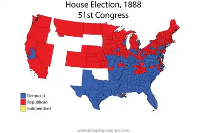 | 1888 House of Representatives election results on Election Day (the results in a number of Southern seats were later successfully contested and overturned.)