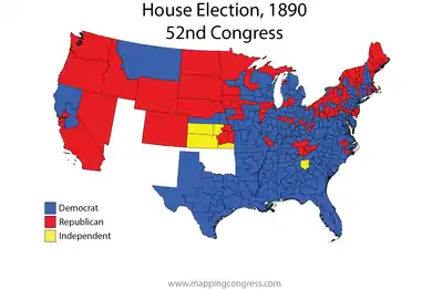 The 1890 United States elections occurred in the middle of Republican President Benjamin Harrison's term. Members of the 52nd United States Congress were chosen in this election. The Republicans suffered major losses due to the Panic of 1890 and the unpopularity of the McKinley Tariff. The Populist Party also emerged as an important third party.