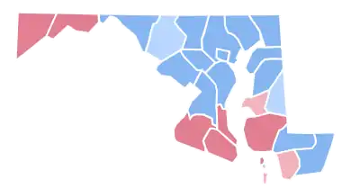 In this election, Maryland voted 6.9% more Democratic than the nation at-large.[1]