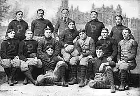 Four Penn players were consensus first-team selections on the 1895 All-American football team: halfback George H. Brooke; center Alfred E. Bull; end Charlie Gelbert; and guard Charles Wharton.[3] Brooke, Gelbert, and Wharton were later inducted into the College Football Hall of Fame.[4][5][6]