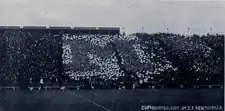 Michigan concluded its season on November 16, 1907, with a 6–0 loss to Penn in front of a crowd of nearly 20,000 spectators in Ann Arbor. After leaving the Big Ten Conference, Michigan played annual rivalry games against Penn at or near the end of the season.[22] Penn was one of the dominant football programs of the era, winning seven national championships between 1894 and 1912 (including the 1908 national championship).[23] The loss was the first sustained by Michigan at Ferry Field.[24] Penn's left guard Gallagher scored the game's only touchdown, and right end Scarlett kicked the extra point. A controversial ruling resulted in a touchdown by Michigan being called back.[25]