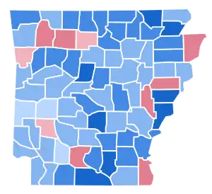 | Arkansas | 937 | 56.04% | 672 | 40.19% | 42 | 2.51% | 21 | 1.26% | 265 | 15.85% | 1,672 |