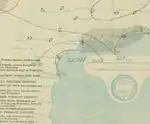 Observations from a ship and weather maps indicate that a tropical depression developed near the north coast of Isla de la Juventud on September 24.[30][1] Moving northward, the depression soon struck the Caribbean coast of modern-day Artemisa Province in Cuba.[1] Heavy rainfall and gusty winds were reported in the now defunct Santa Clara Province.[31] The depression emerged into the Gulf of Mexico and failed to intensify further before making landfall near Naples, Florida late on September 25. Moving northeastward, the cyclone emerged into the Atlantic Ocean and strengthened into a tropical storm around 12:00 UTC on September 26. About 24 hours later, the system peaked with maximum sustained winds of 60 mph (95 km/h). Thereafter, the storm began weakening.[1] However, on September 28, a ship observed a barometric pressure of 1,000 mbar (30 inHg), the lowest known in relation to the storm.[30] Around 00:00 UTC on September 29, the cyclone weakened to a tropical depression just west of Bermuda and dissipated shortly thereafter.[1]