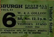 November 12, 1910 Pitt vs. W. & J. game ticket stub