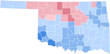 | Oklahoma | 6,963 | 51.30% | 5,706 | 42.04% | 822 | 6.06% | 83 | 0.61% | 1,257 | 9.26% | 13,574 |