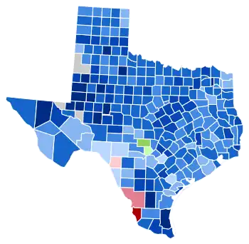 Texas was won by Princeton University President Woodrow Wilson (D–Virginia), running with governor of Indiana Thomas R. Marshall, with 72.73% of the popular vote, against the 27th president of the United States William Howard Taft (R–Ohio), running with Columbia University President Nicholas Murray Butler, with 9.45% of the popular vote, the 26th president of the United States Theodore Roosevelt (P–New York), running with governor of California Hiram Johnson, with 8.86% of the popular vote and the five-time candidate of the Socialist Party of America for President of the United States Eugene V. Debs (S–Indiana), running with the first Socialist mayor of a major city in the United States Emil Seidel, with 8.25% of the popular vote.[1] As of the 2020 presidential election, this is the last election in which Webb County voted Republican.
