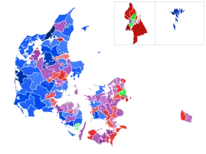 | Danish Social Liberal Party | 67,903 | 18.69 | 31 | +11 | |