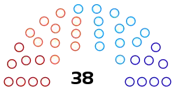 The Volksraad was created by a law passed on 16 December 1916 in order to further the possibility of self-government.[3] It had a total of 38 members, half of which were to be elected and half appointed.[4] Seats were also assigned to ethnic groups, with 20 for the Dutch population (nine elected, eleven appointed), 15 for the native population (ten elected, five appointed) and three for the Chinese population (all of which were appointed).[4]