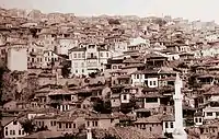 The 1917 Great Ankara Fire caused extensive damage to the Turkish city of Ankara on September 15, 1917.[1] Areas affected included the Hisarönü, Çıkrıkçılar Yokuşu, Bedesten, Saraçlar Bazaar and Atpazarı. It is estimated that up to 1,900 people[2] lost their lives in the fire. The 1917 fire was part of successive fires which occurred in 20 provinces of Turkey in the span of three years. After the fire, only two mosques and seven churches remained in Ankara.