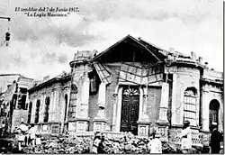 The 1917 San Salvador earthquake occurred on June 7 at 18:55 local time near the Salvadoran capital. The hypocenter of the Mw 6.7 was at a shallow depth of 15 km (9.3 mi), and occurred along a shallow crustal fault near San Salvador.[1] The earthquake caused significant destruction of the city and left approximately 1,050 dead. It was followed by an eruption on San Salvador that killed another 1,100. Only behind the earthquake of 1986, it is the second deadliest in El Salvador's history.[2]