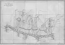 During this time Morshead and Wheeler had surveyed 31,000 square kilometres (12,000 sq mi) of difficult unknown territory producing a map of four miles to an inch (1:250,000) and updating the map of Sikkim. Wheeler made a careful 1,600 square kilometres (600 sq mi) photographic survey close to Everest itself producing a one-inch (1:63360) map.[41][42] Wollaston had collected and identified plants, birds and animals, and Heron had made geological investigations over 21,000 square kilometres (8,000 sq mi) and had produced a geological map.[41][43] Reports of these activities appeared in Howard-Bury's book along with a description of the scientific equipment and cameras that were used.[44] Wheeler, Heron and Howard-Bury reached Nangpa La west of Everest and on the Nepalese border.[45] Morshead and Wollaston crossed the border further west at Lapche, south of Lapche La (Labuche La), and got as far west as Nyenyam.[46] The geographical and geological surveying reached as far north as the Tsangpo river.[47]