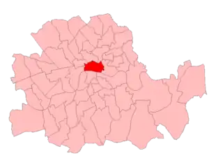 ![]() A map of parliamentary constituencies within the County of London at the time of the by-election, with City of London highlighted in red. | ||||||||||||||||