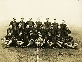 The starting lineup was Herschel Caldwell (left end), Jack Langhorne (left tackle), Bill Buckler (left guard), Clyde Propst (center), Bruce Jones (right guard), Tom Camp (right tackle), Graham McClintock (right end), Grant Gillis (quarterback), David Rosenfeld (left halfback), Hulet Whitaker (right halfback), Pooley Hubert (fullback).[30]