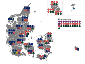 All 149 seats in the Folketing 75 seats needed for a majority | |||||||||||||||||||||||||||||||||||||||||||||||||||