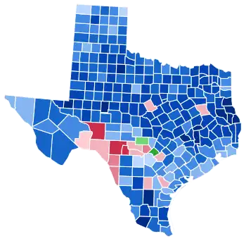 | Van Zandt | 3,957 | 79.16% | 1,038 | 20.76% | 4 | 0.08% | 2,919 | 58.39% | 4,999 |