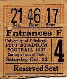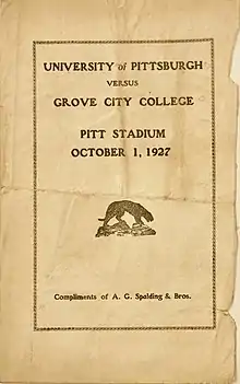 - ↑ Carnegie Institute of Technology versus University of Pittsburgh Official Souvenir Program. University of Pittsburgh. October 22, 1927. p. 16.
